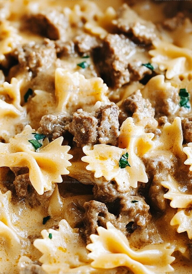 Whipping up a delightful cheesy beef and bowtie pasta in garlic butter feels like culinary magic happening right in your kitchen.