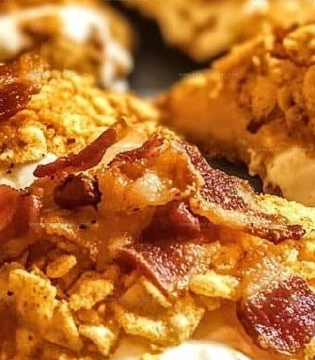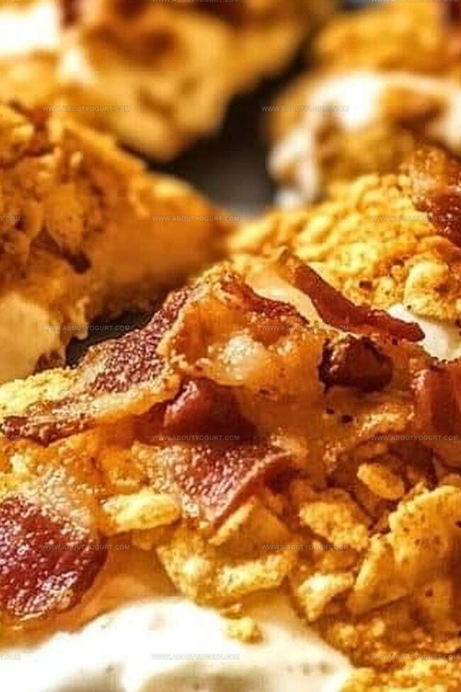 Doritos chicken becomes irresistible when stuffed with creamy cheese and crispy bacon, creating a mouthwatering fusion of flavors. Crisp breading and melted filling promise a delightful meal that satisfies hunger and delights the palate with each savory bite.
