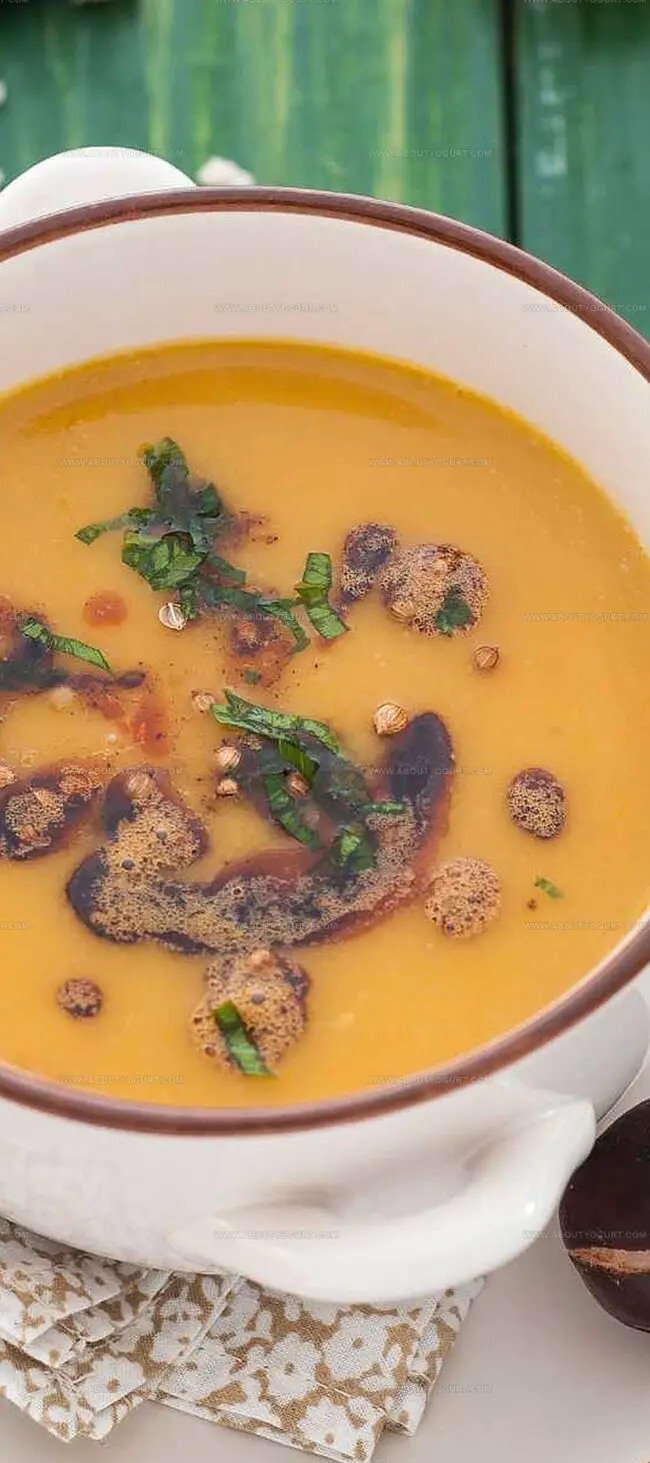 Rich, creamy chestnut soup dances between rustic comfort and elegant sophistication.