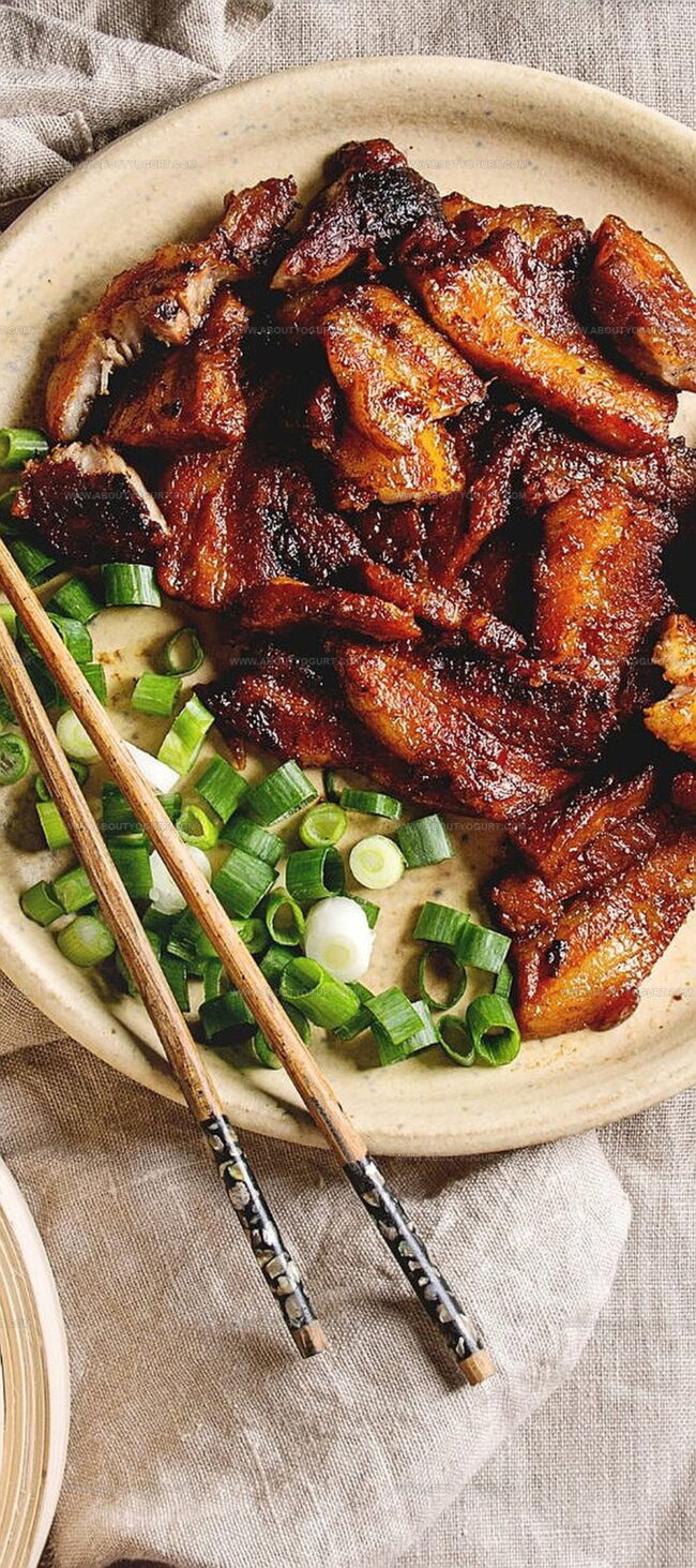 Transfer the glazed pork to a serving platter. Sprinkle with freshly chopped red chili and thinly sliced green onions to add a pop of color and bright, fresh flavor. Serve piping hot and watch everyone’s eyes light up with excitement.