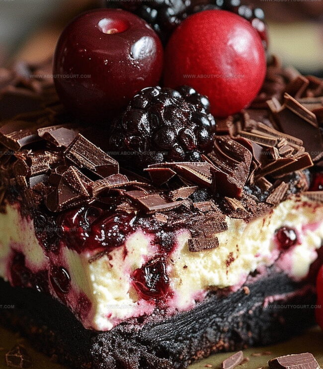 Sweet dreams come alive with these decadent chocolate cherry cheesecake bars that blend rich cocoa and luscious fruit in every delightful bite.