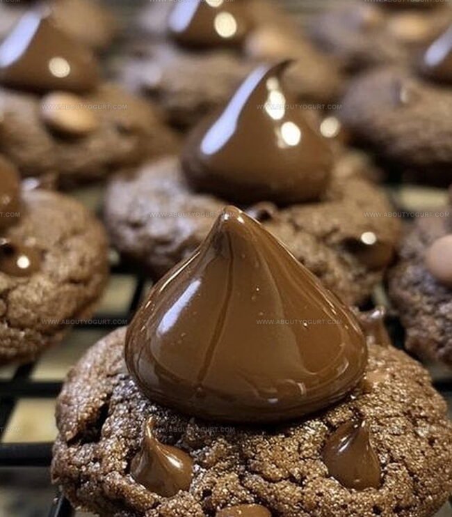 Soft, pillowy cookie bases cradle glossy chocolate kisses in a perfect embrace.