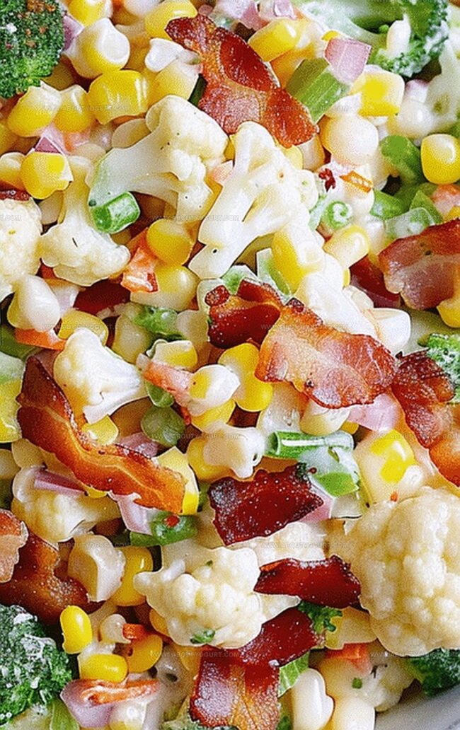 Creamy Broccoli, Cauliflower, Corn, And Bacon Salad Recipe