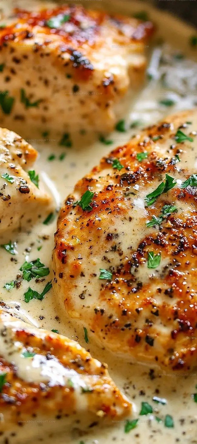 - Gently return seared chicken cutlets to the skillet, coating each piece thoroughly with the rich ranch sauce. Serve immediately while warm, ensuring generous sauce coverage.