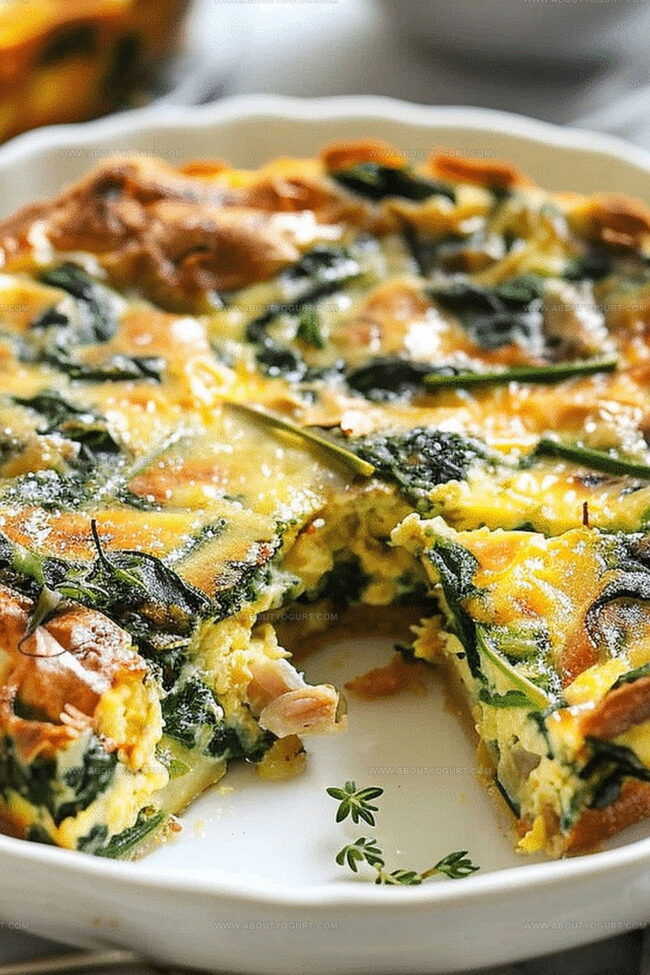 - Slice and serve warm, enjoying the rich, savory flavors of this crustless spinach quiche.