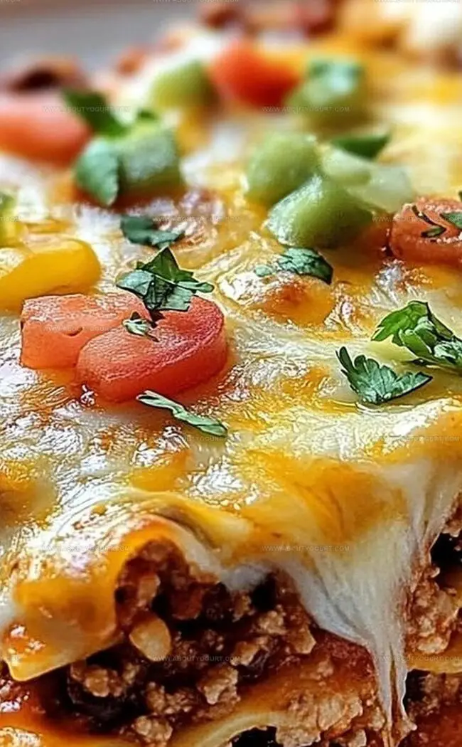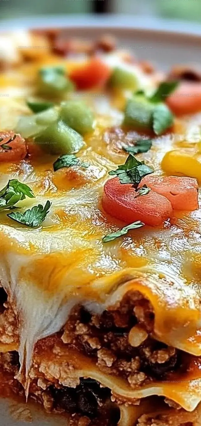 Layers of tortillas, seasoned meat, and melted cheese create a vibrant twist on traditional Italian classics.