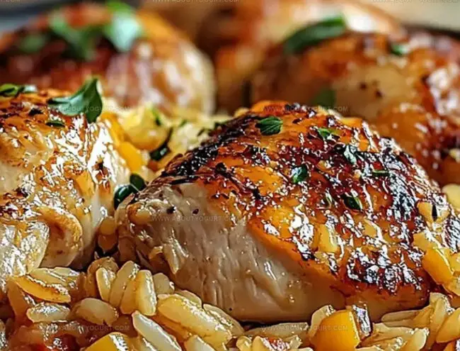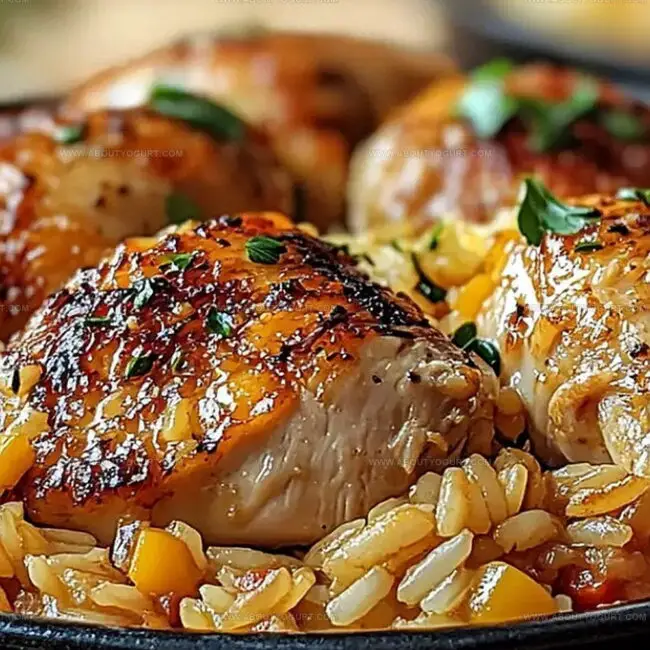 - Bake in the preheated oven for 1 to 1½ hours, monitoring until chicken reaches perfect doneness and rice becomes tender and fluffy.