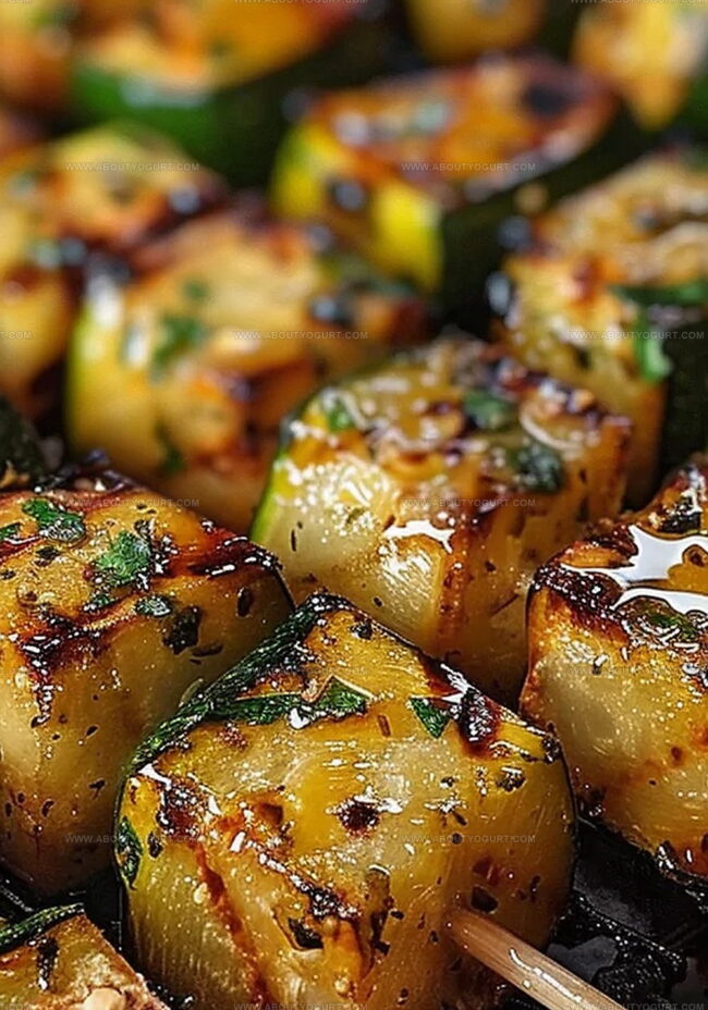 - Generously coat the skewered zucchini with the aromatic garlic butter mixture, allowing the flavors to penetrate every surface.