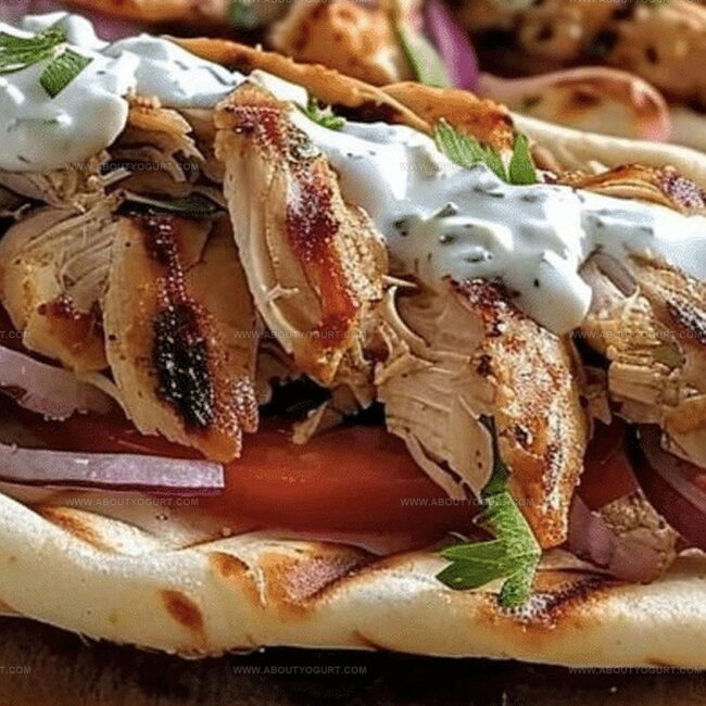 - Construct gyros by layering grilled chicken strips across soft pita foundation.