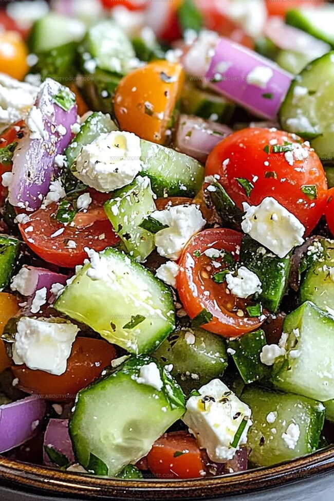 Mediterranean summers buzz with crisp, refreshing greek cucumber, tomato, and feta salad that captures sunshine on a plate.