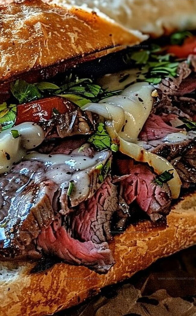 - Top the steak with the sautéed onions and peppers, adding depth and sweetness to the sandwich.