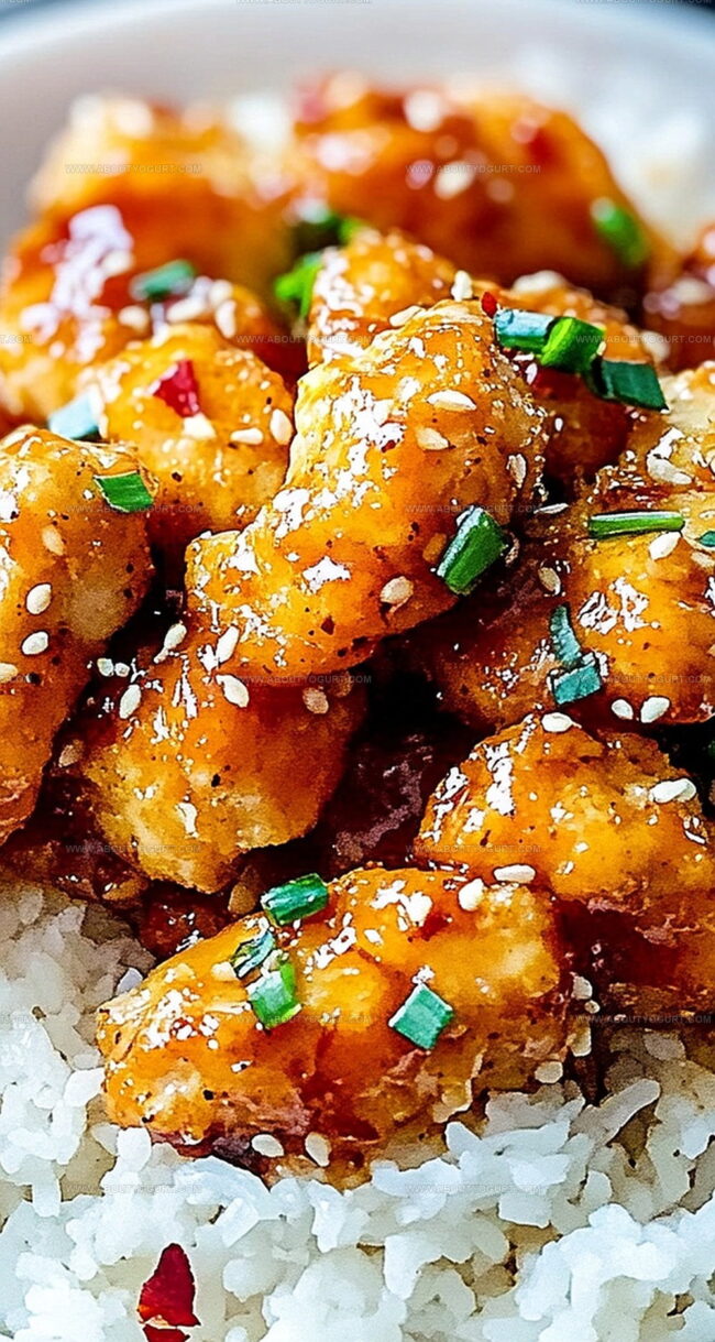 Succulent chicken pieces get coated in a luxurious glaze combining sweet and savory notes.