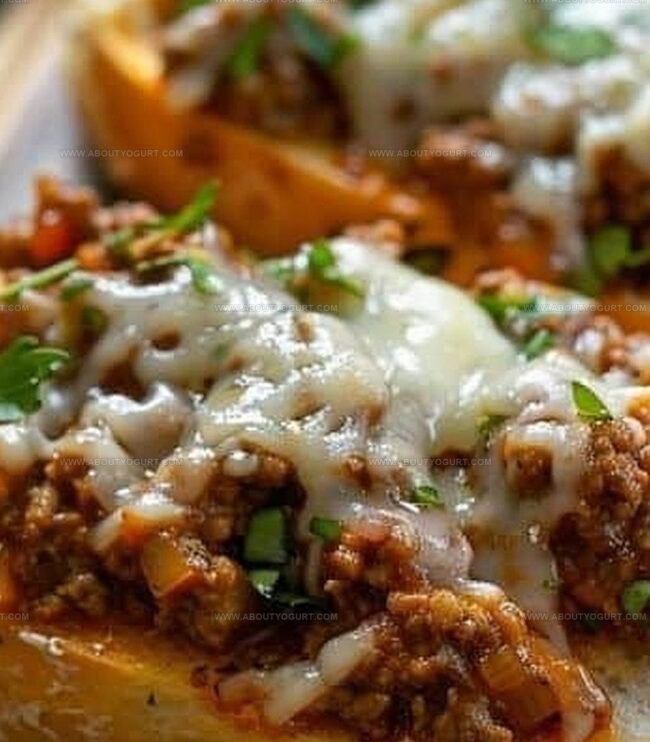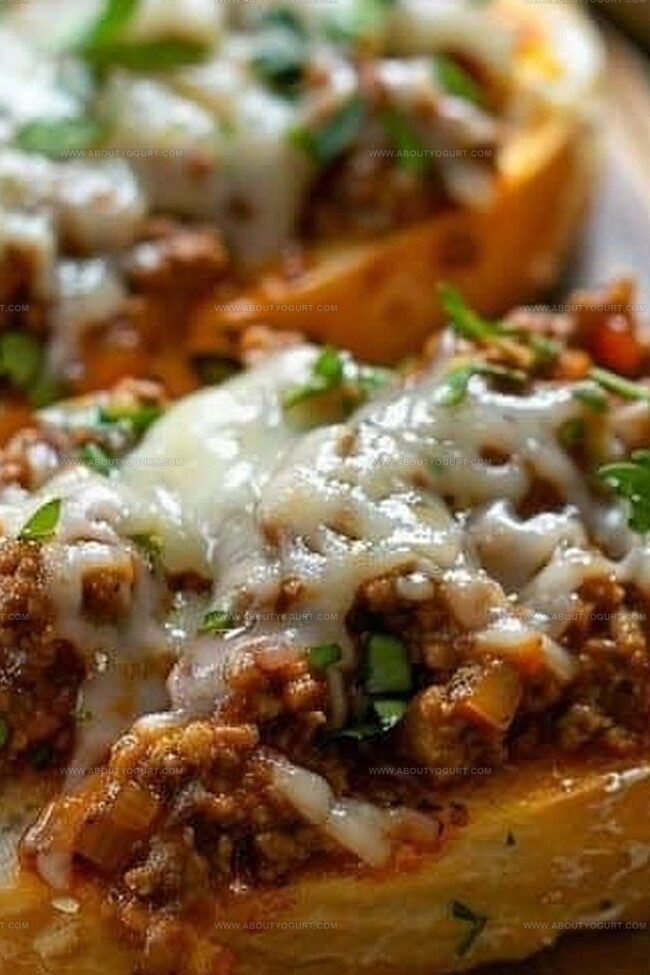 Prepare the beef mixture in advance and store in the refrigerator for up to 2 days. Reheat gently before assembling on garlic bread to maintain the best texture and flavor.