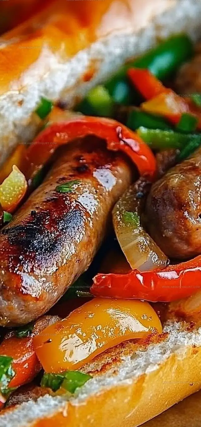 Succulent italian sausage nestled among vibrant peppers creates a culinary symphony that dances across your plate.