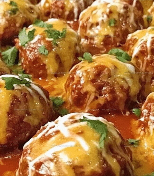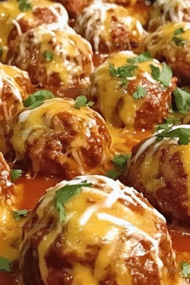 - Transfer the fully cooked meatballs into a baking dish and generously coat them with the heated enchilada sauce, ensuring complete coverage.
