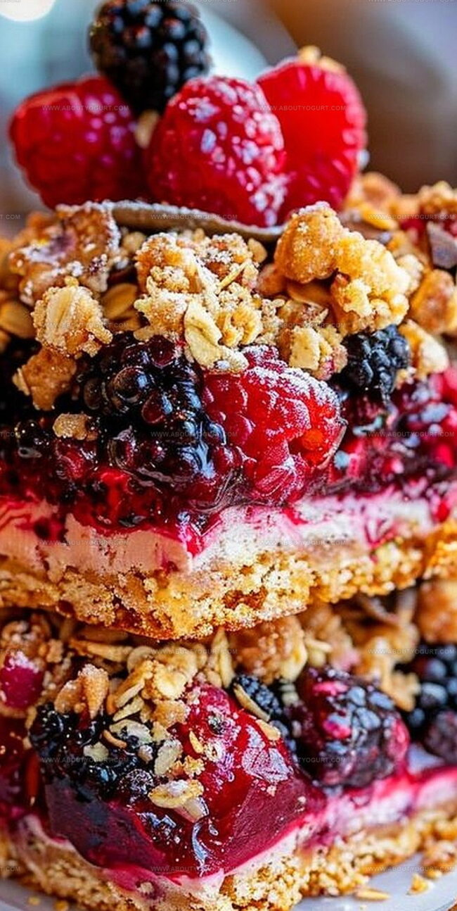Mixed berries like strawberries, blueberries, raspberries, and blackberries are perfect. The combination provides a rich, vibrant flavor and beautiful color for the crumble bars.