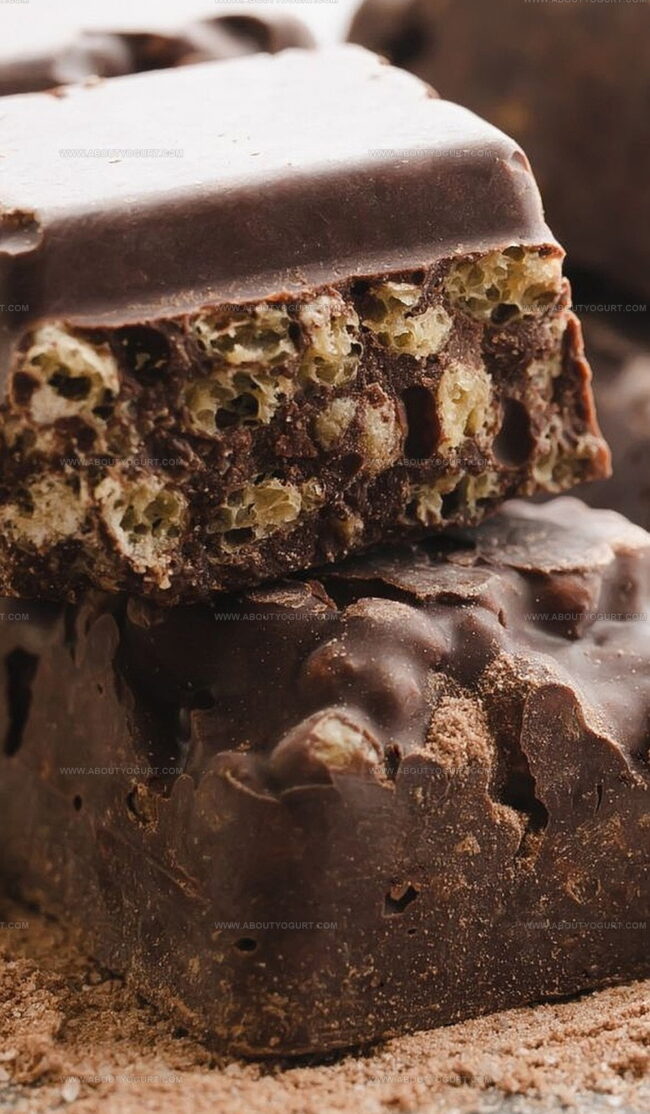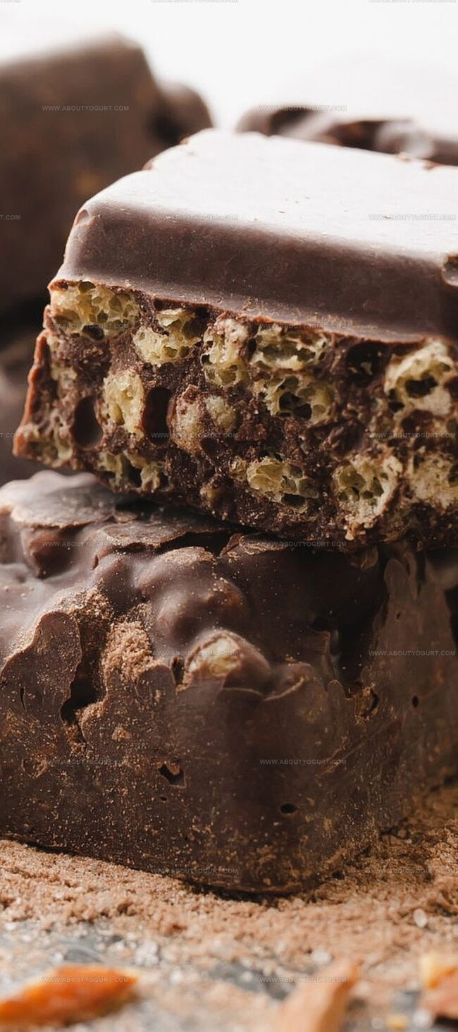 Crispy cereal chunks meet gooey chocolate in a delightful no-bake treat.