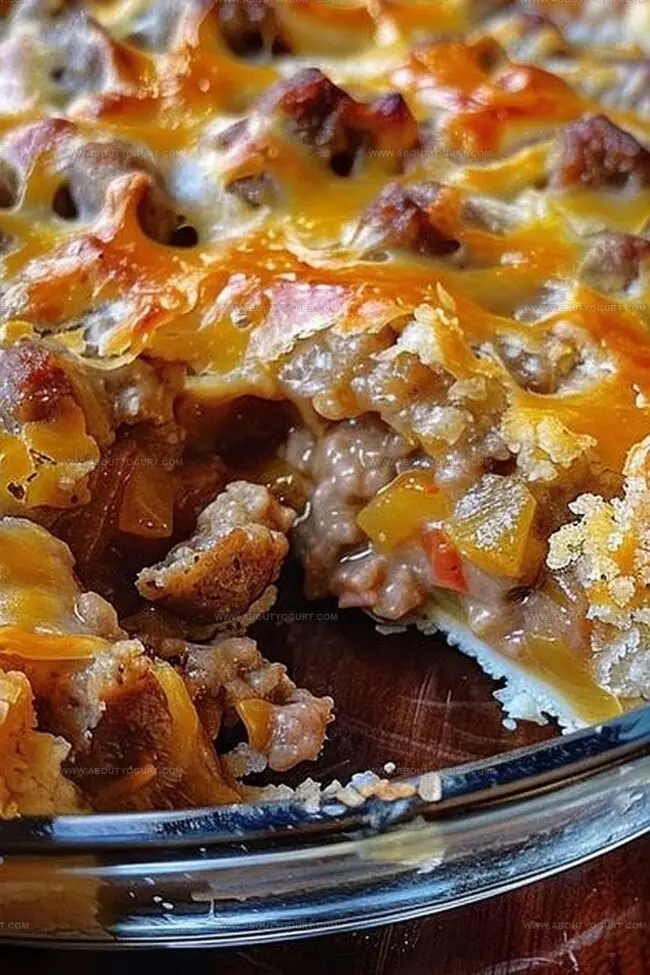 Savory sausage mingles with melted cheese in a golden, flaky crust that whispers comfort.