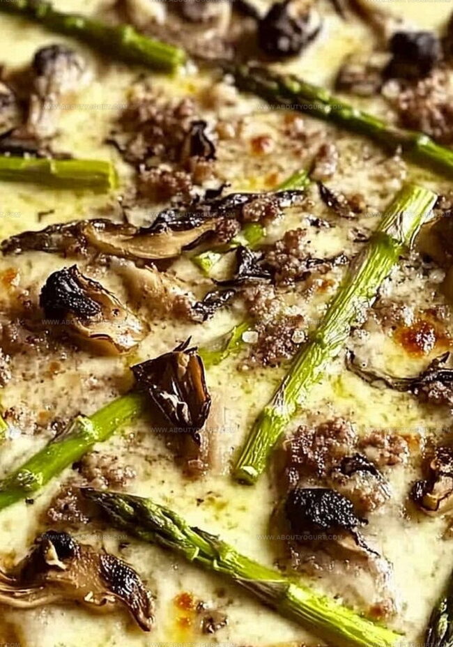Rustic Italian Morel and Asparagus Crispy Pizza blends earthy mushrooms with tender spring vegetables on a perfectly crisp crust. Sophisticated flavors dance across each slice, inviting you to savor every delectable Mediterranean-inspired bite.