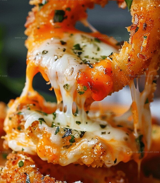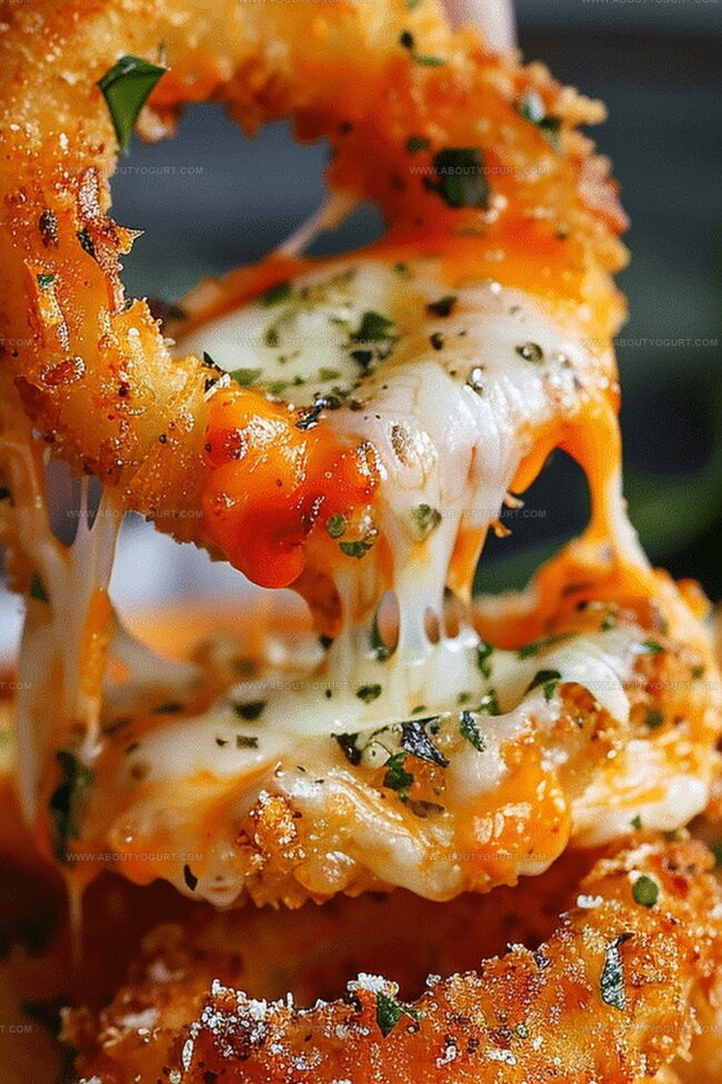 Crispy mozzarella stick onion rings blend two beloved appetizers into one irresistible snack that promises pure indulgence. Golden-brown rings packed with melty cheese create a crowd-pleasing treat you cannot resist enjoying with friends and family.