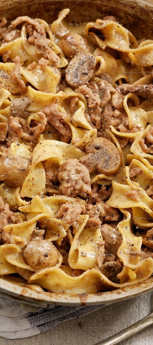 Creamy mushroom stroganoff beckons with its hearty, comforting embrace on chilly evenings.