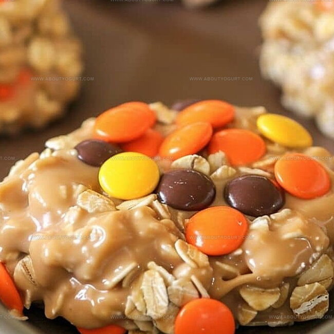 Rapidly stir in:Mix until the mixture looks smooth and glossy. Add quick-cooking oats and blend thoroughly. Gently fold in Reeses Pieces, distributing them evenly throughout the mixture.