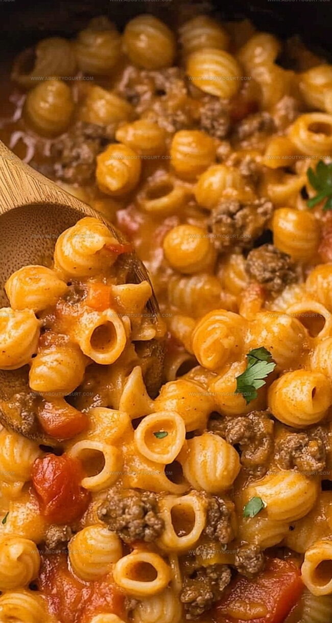 Cheese melts perfectly, blending seasoned meat and tender pasta into a crowd-pleasing dish.