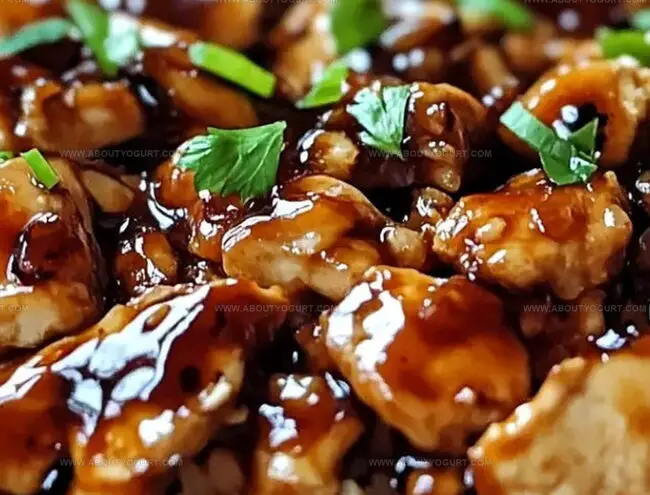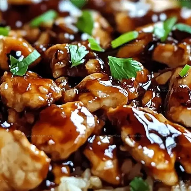 Tender chicken pieces nestled in fluffy rice create a harmonious blend of sweet and smoky flavors.