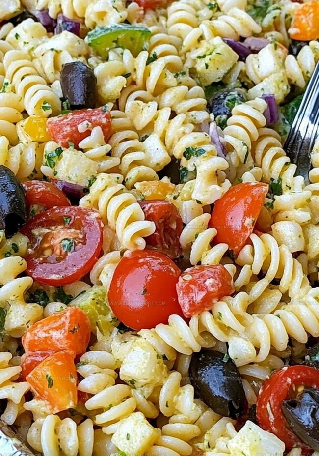 Prepare the pasta salad 24 hours before serving for maximum flavor absorption. Before serving, check moisture levels. If the salad seems dry, add extra Italian dressing to revive its zesty character. Serve chilled and enjoy the refreshing summer-style dish.