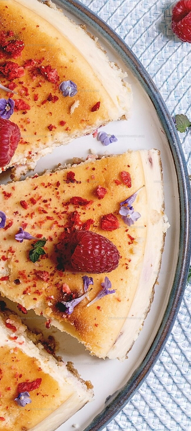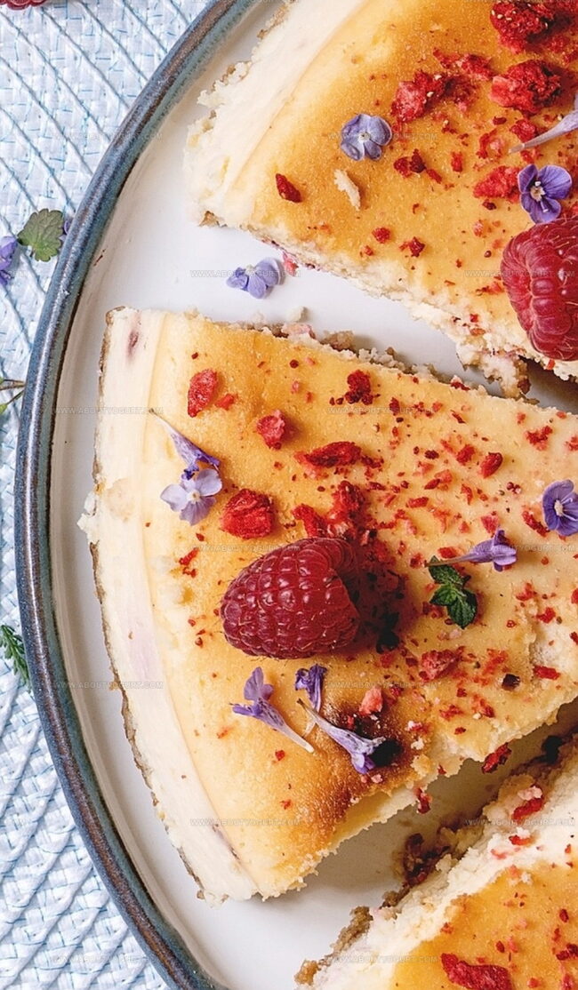 - When ready to serve, release from the springform tin and garnish with preferred toppings or enjoy in its classic, pristine form.