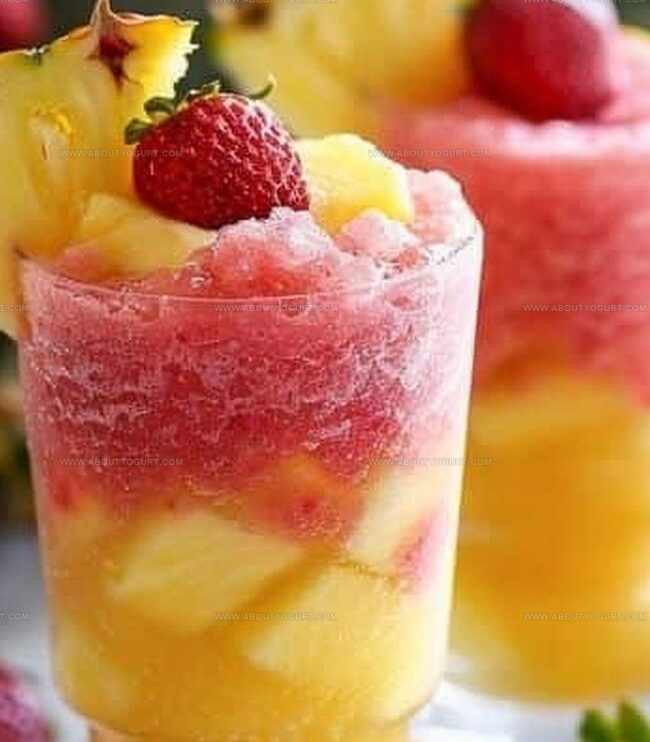 Tropical paradise meets summer refreshment in these pineapple strawberry swirled slushies, blending sweet fruit flavors into a cool, Instagram-worthy drink. Icy layers of tangy pineapple and luscious strawberry create a delightful sip that cools you down instantly.