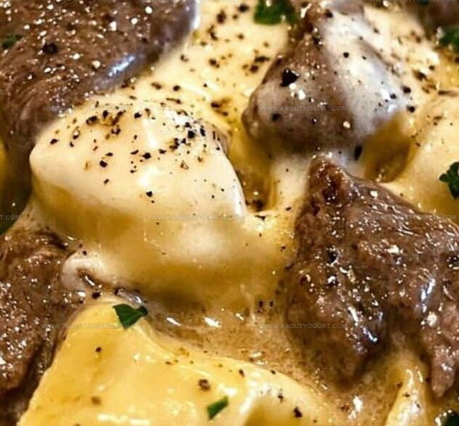 Sliced beef, melted cheese, and soft pasta intertwine like old friends reuniting on your plate.