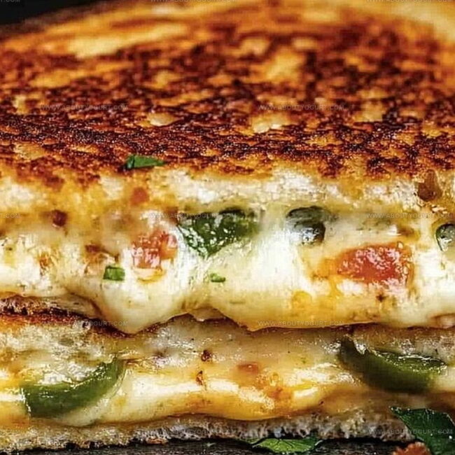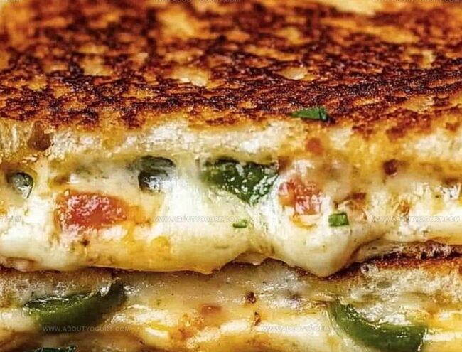 Spicy Mexican-inspired jalapeno popper grilled cheese merges creamy cheese, crispy bacon, and roasted peppers between golden-brown sourdough slices. Comfort meets zesty flavors in this quick sandwich that brings bold southwestern spirit directly to your plate.