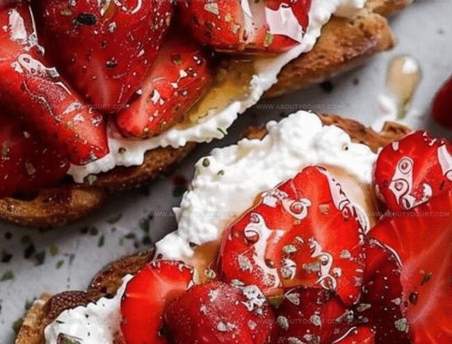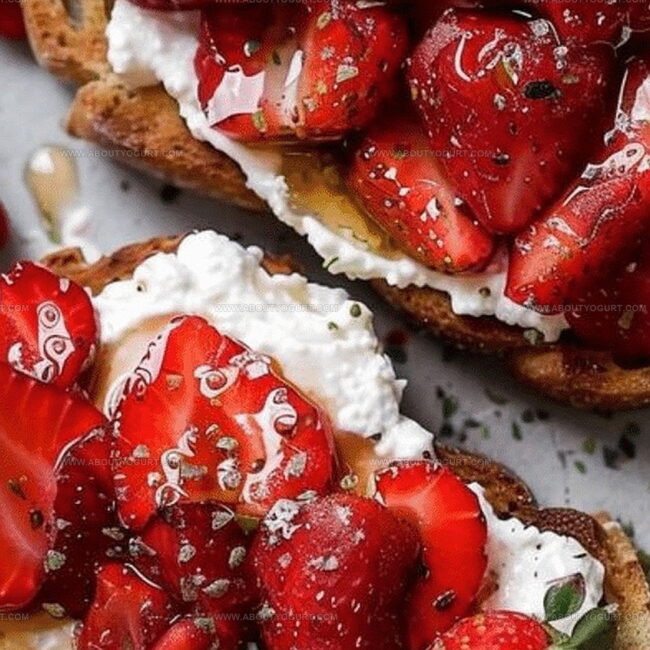 Luxurious roasted strawberry whipped ricotta toast delivers Mediterranean charm with silky ricotta and caramelized strawberry elegance. Sweet summer essence mingles with creamy cheese, promising delightful moments you’ll savor from first delectable bite.