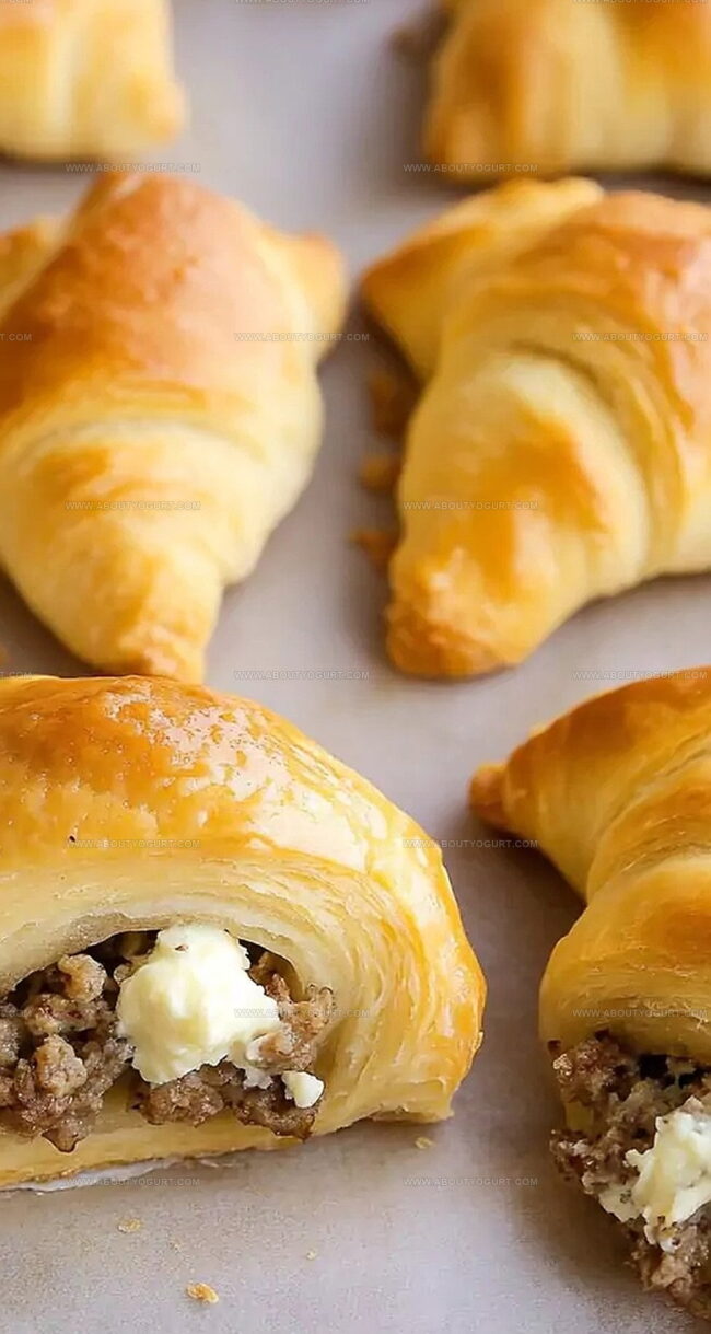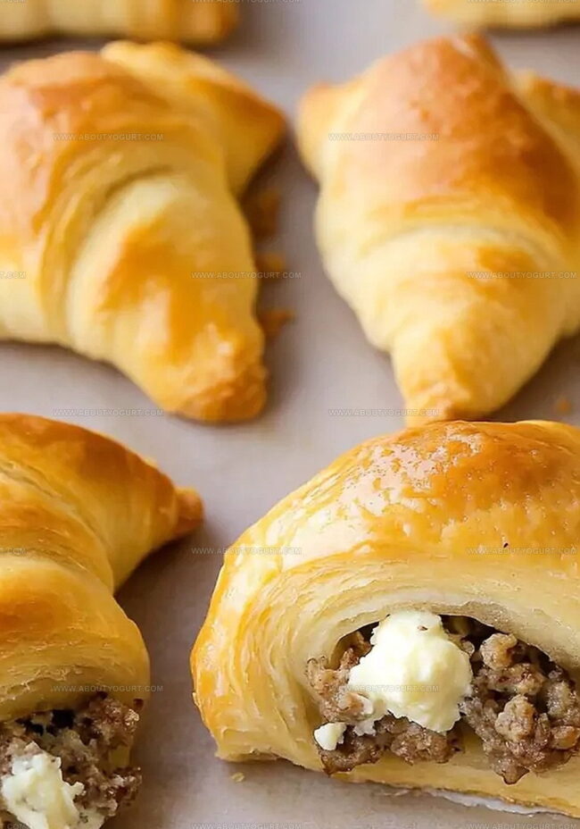 Crispy golden crescent rolls stuffed with savory sausage and cream cheese promise a mouthwatering breakfast delight.