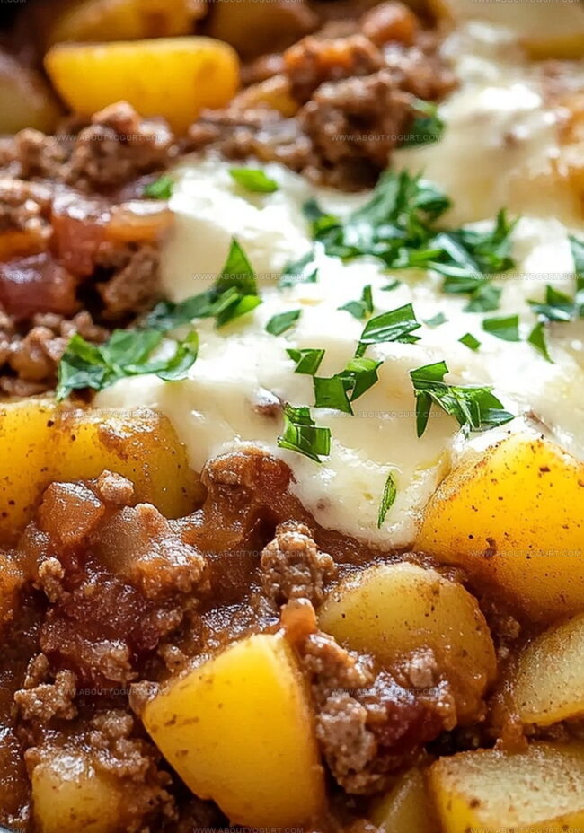 Finish with a sprinkle of freshly chopped parsley. Serve hot and enjoy the comforting cowboy-style potato casserole!