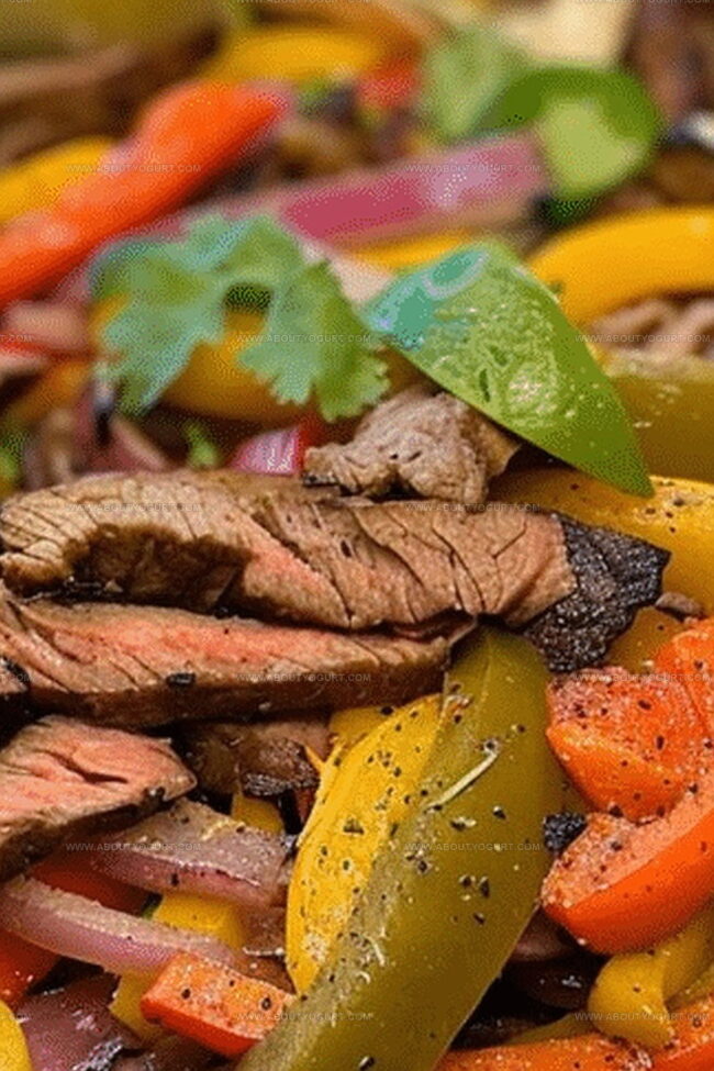 Peppers and onions dance alongside tender meat strips in this classic Mexican-inspired dish.