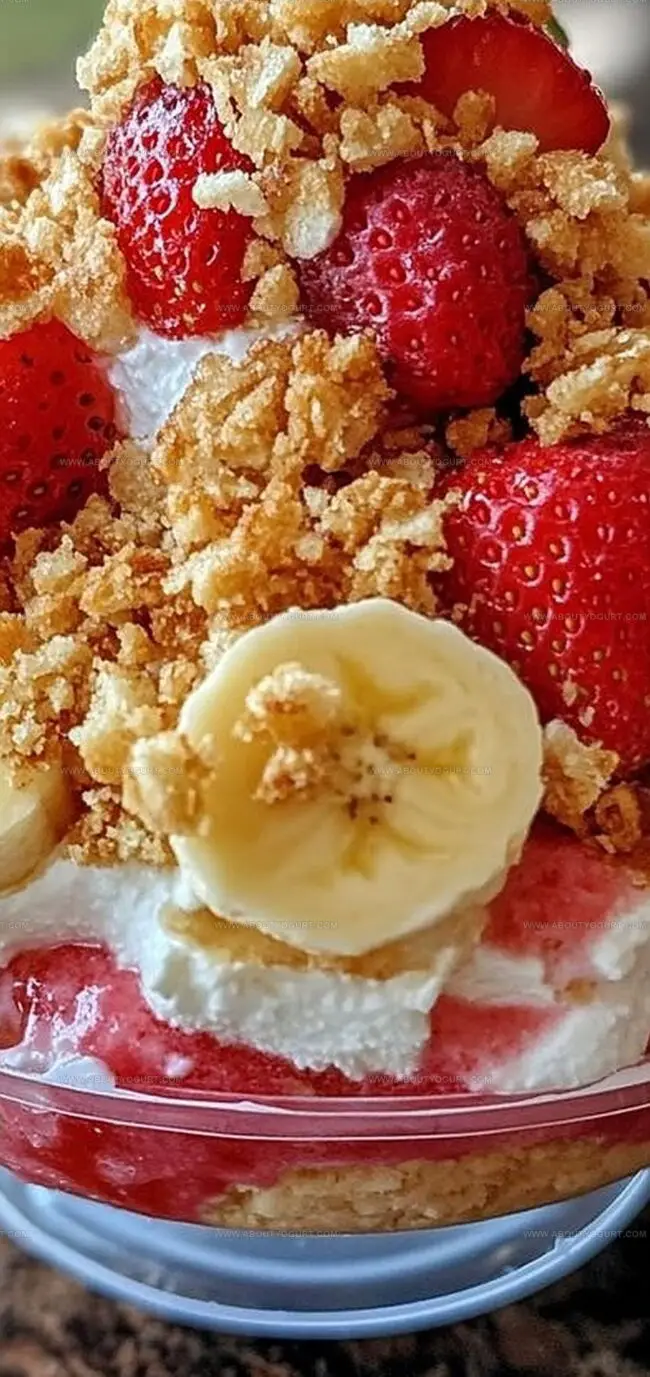 Sweet summer memories dance through this strawberry crunch banana pudding that combines classic comfort with unexpected texture.