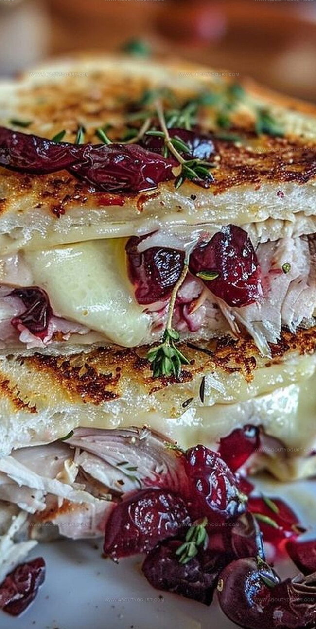 Gourmet turkey, cranberry, and brie grilled cheese elevates comfort food with festive flavors and luxurious textures. Melted cheese, tender turkey, and tangy cranberry sauce create a perfect sandwich that satisfies winter cravings and brings warmth to your plate.