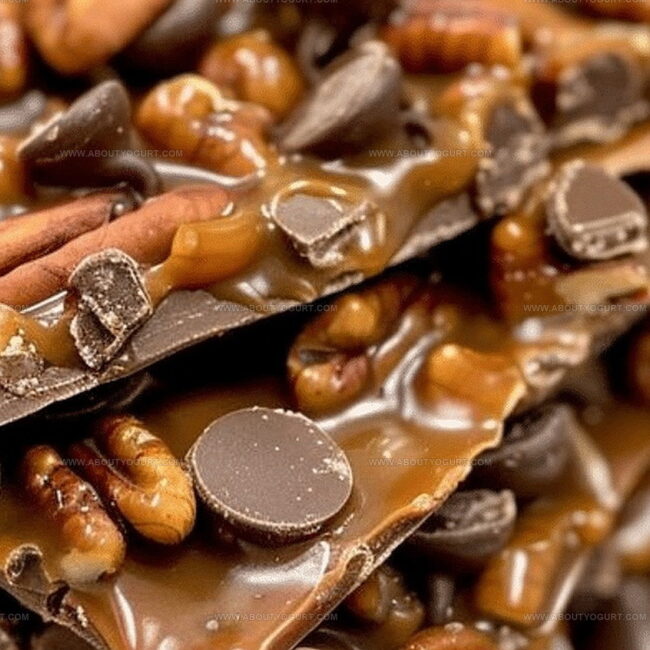 Clusters of perfectly roasted pecans provide a delightful crunch against smooth caramel ribbons.