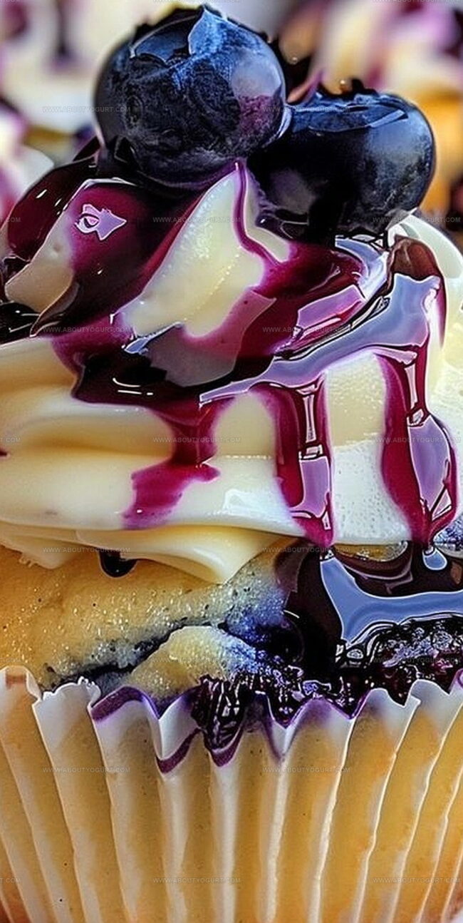 Creamy white chocolate blends magically with bursting blueberries in these decadent cheesecake cupcakes that dance between elegant dessert and playful treat.