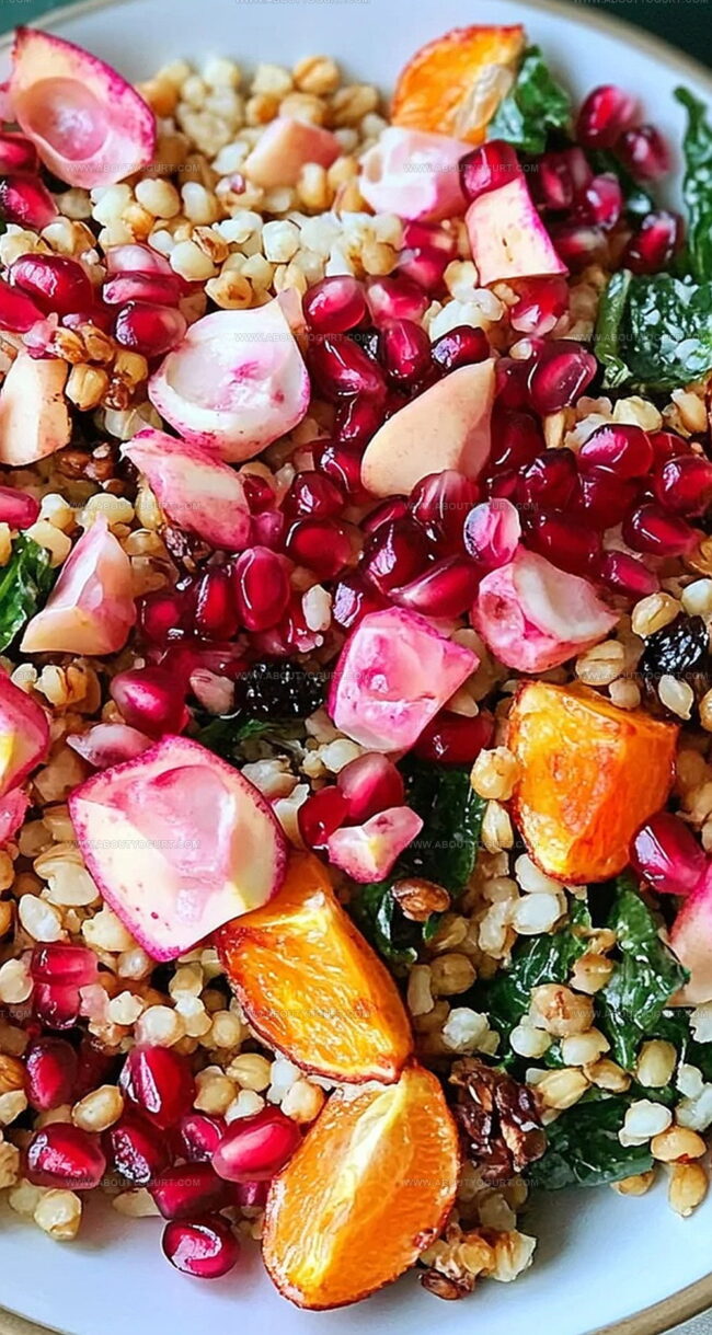 Main Ingredients:Dressing Ingredients:Garnish and Flavor Enhancers:Winter Pomegranate And Grain Salad Made Easy