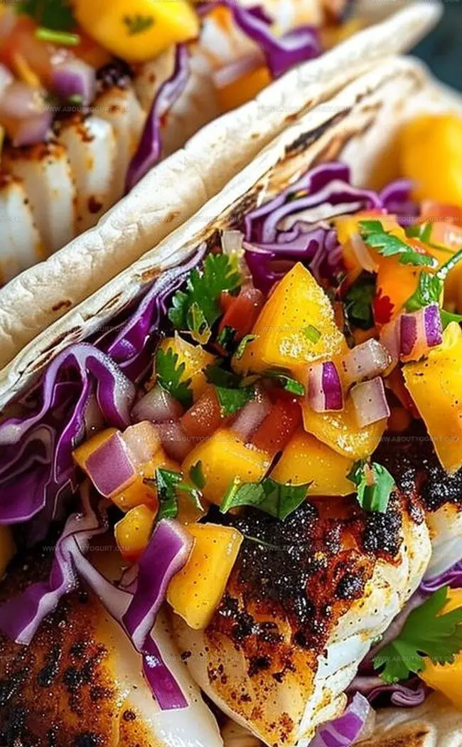 Zesty Blackened Cod Fish Tacos with Pickled Cabbage & Mango Salsa Recipe