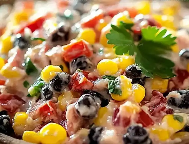 Cowboy Caviar Dip brings southwestern charm to snack time with its colorful medley of fresh vegetables and beans. Crisp corn, black beans, and tangy lime dressing create a perfect party starter that you’ll want to scoop up with tortilla chips.